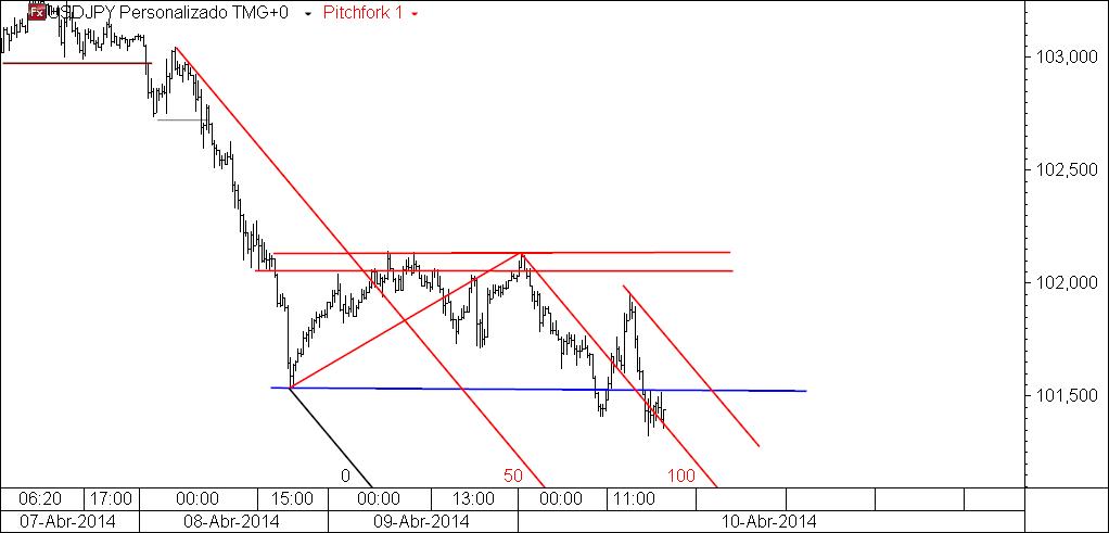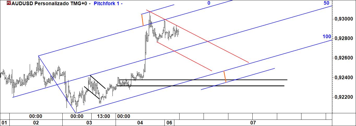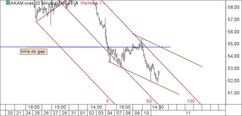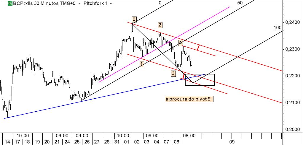 para tentar encontrar o lugar onde provavelmente a correcção poderá terminar uso o fork descendente, cuja linha média constituirá uma barreira (daí chamar-se fork tipo pendulum pullback)