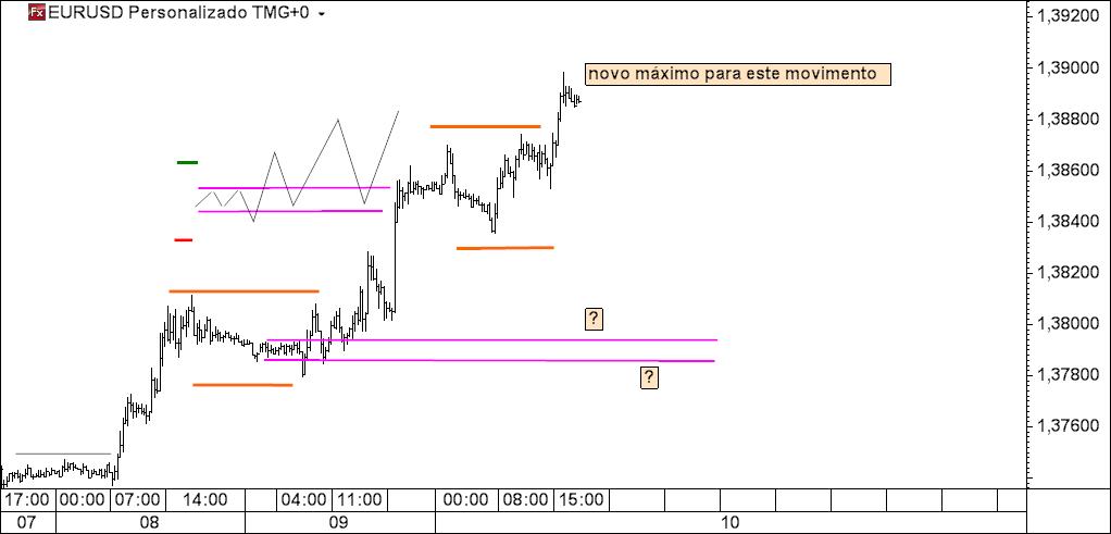 será exibido um gráfico diário para melhor se perceber o que está em observação, ficando em aberto a possibilidade de se descer para timeframe mais baixo para, por exemplo, decompor o preço e/ou desenhar um trade