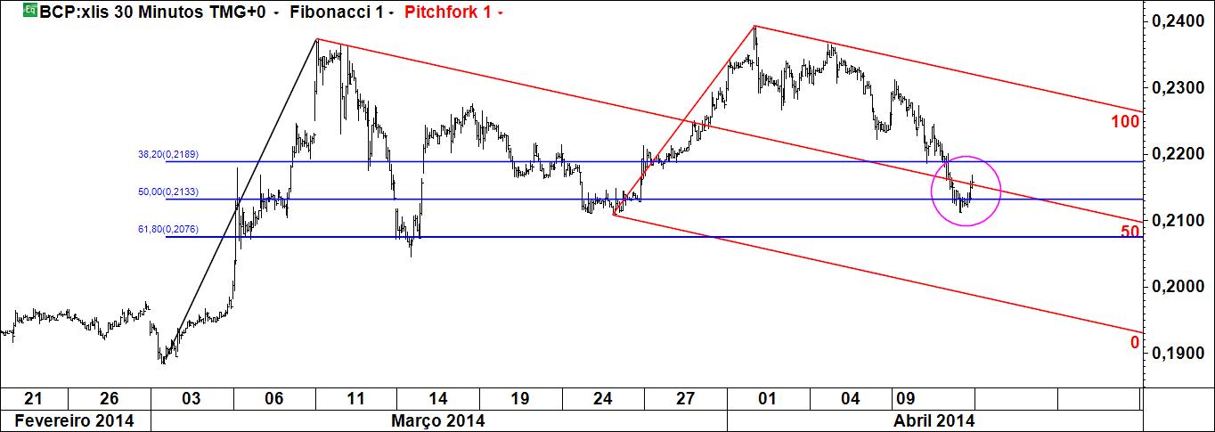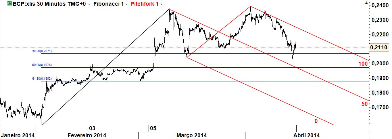 ninguém duvidará que são zonas muito interessantes, mas é óbvio que nada nos garante que aí se dê a reversão da correcção: qualquer um deles pode ainda descer até aos 61,8% ou então limita-se a fazer um breve deslize abaixo dos 50% (no caso do bes, pois o bcp já o fez), para brincar com os "fib guys"