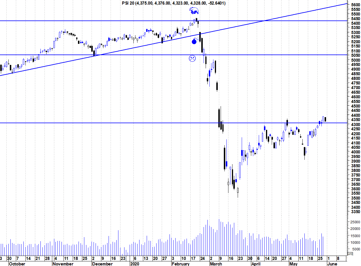 Desde o relief rally de inícios de Abril que praticamente o PSI anda a acumular enorme energia, esbarrando sempre nesta zona dos 4300/4350.