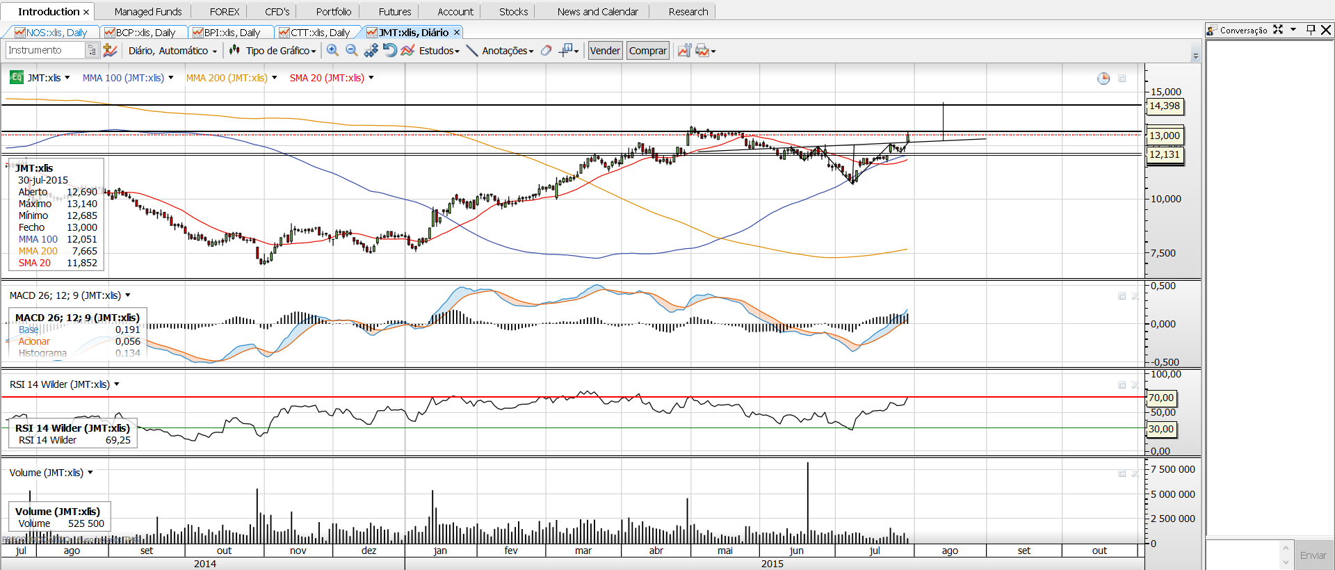 Deixo a minha visão na JMT (semanal e diário): grandes resistências a 14.