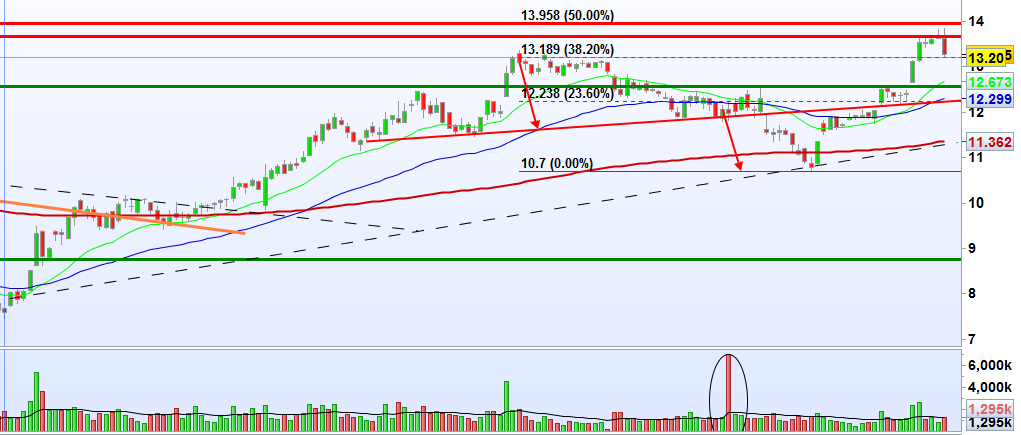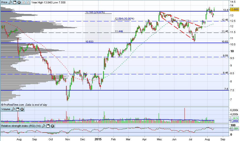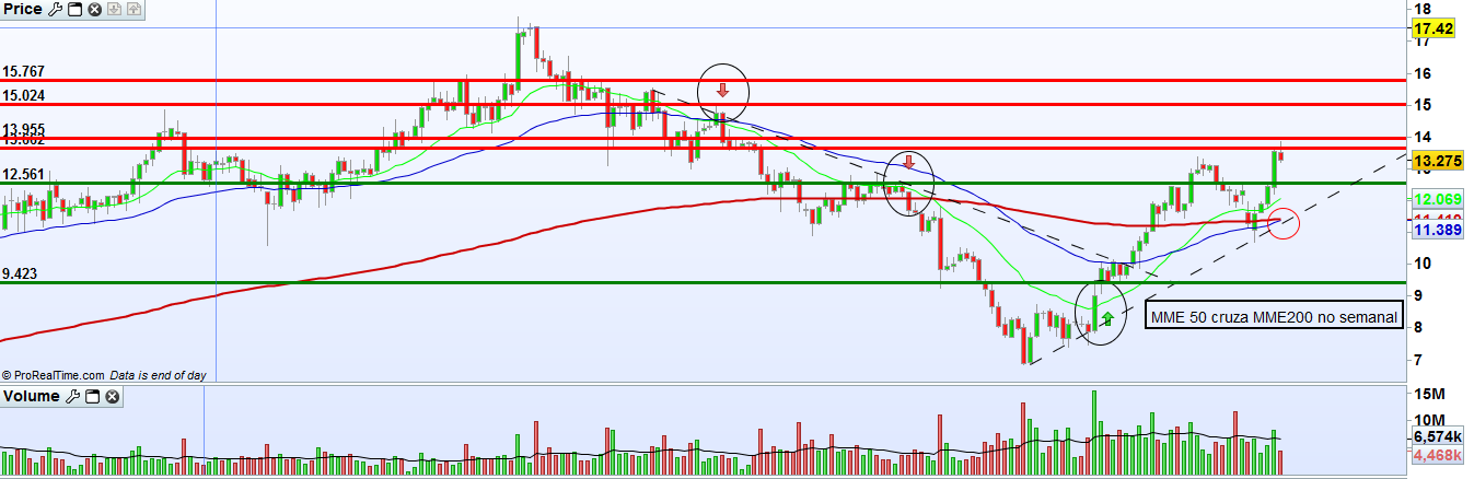 Acho bastante provável que pelo menos vá aos 13,40 nos próximos dias ...