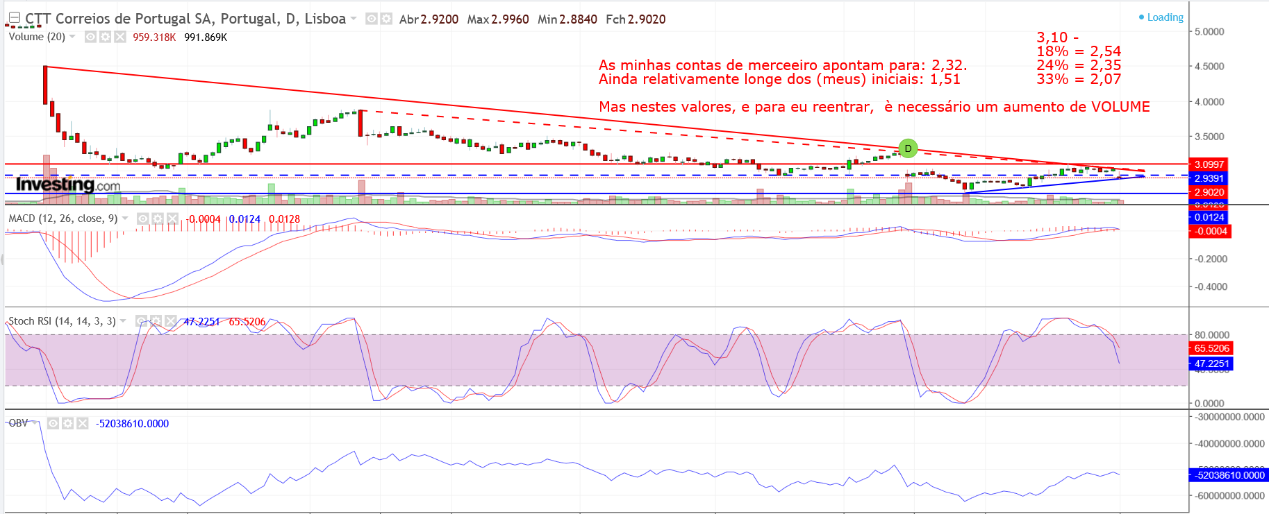 Li por aí duas ou três referencias à queda da cotação até aos 2,7/2,72€. Pode não acontecer e pode ir de um fôlego até bem abaixo desse valor (2,6/2,5€).