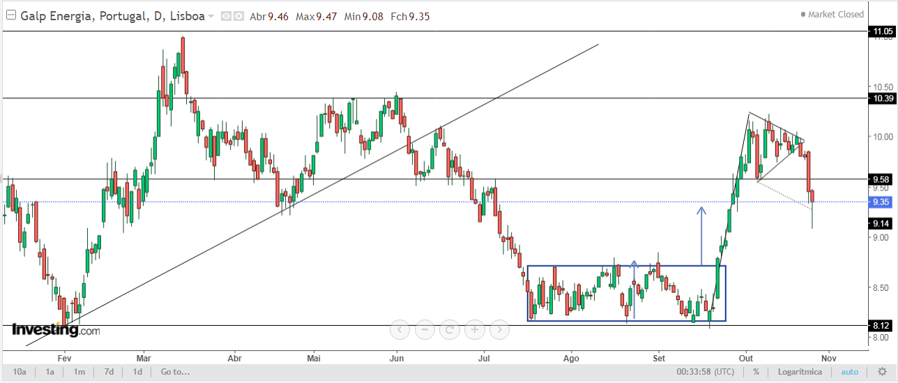 se não reagir saqui nos 9.00, que está em cima da MA50 e MA100, será mau e vai direitinha aos 8.65.