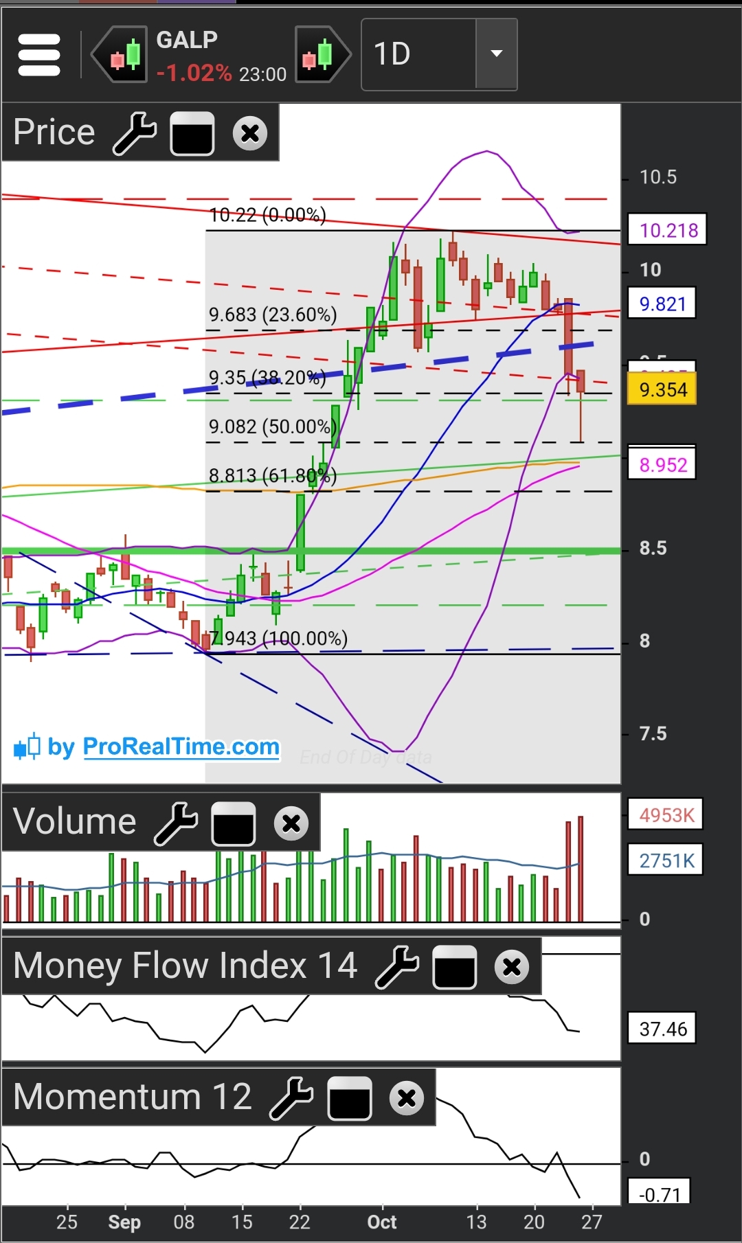 Nota: a percepção que tenho pelo gráfico do Psi (mas posso estar errado), é que o Psi20 continuará a corrigir, caso tal ocorra, falta saber como reagirá a Galp.