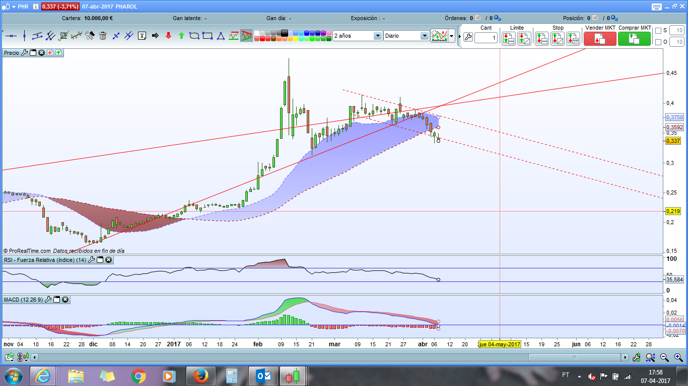 Para quem está dentro da Pharol numa vertente especulativa, ( Na minha ótica neste titulo não considero outra vertente ) , não está fácil, correcção de 9 %.