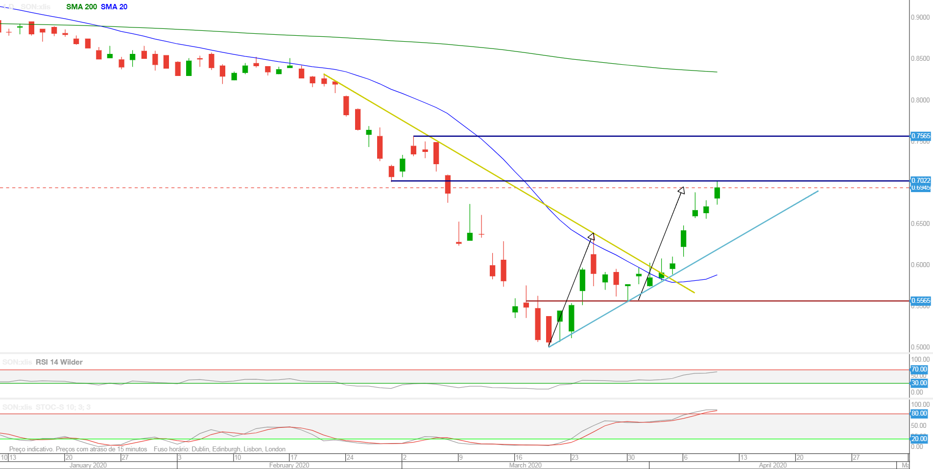 Deixo aqui os gráficos actualizados da Sonae, uma das acções que mais recuperou desde o fundo.