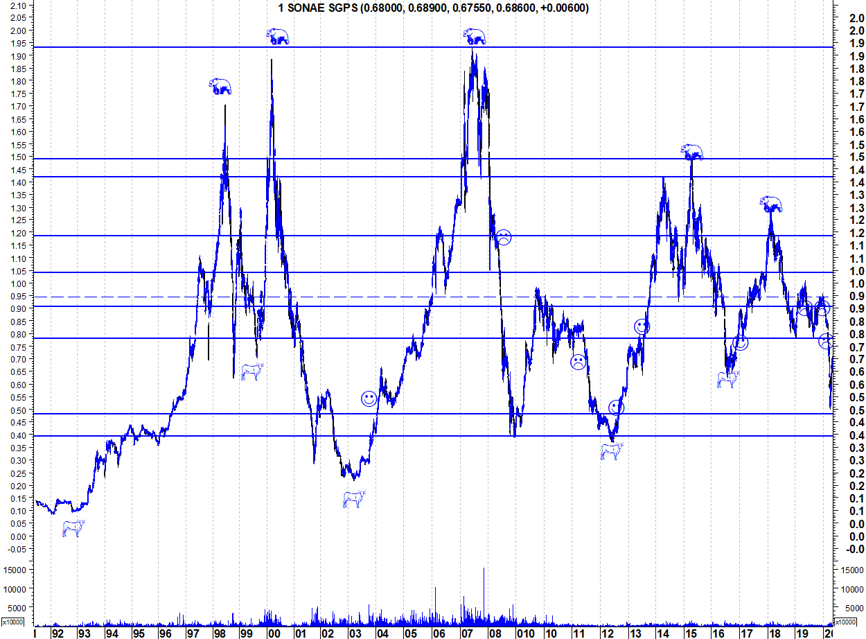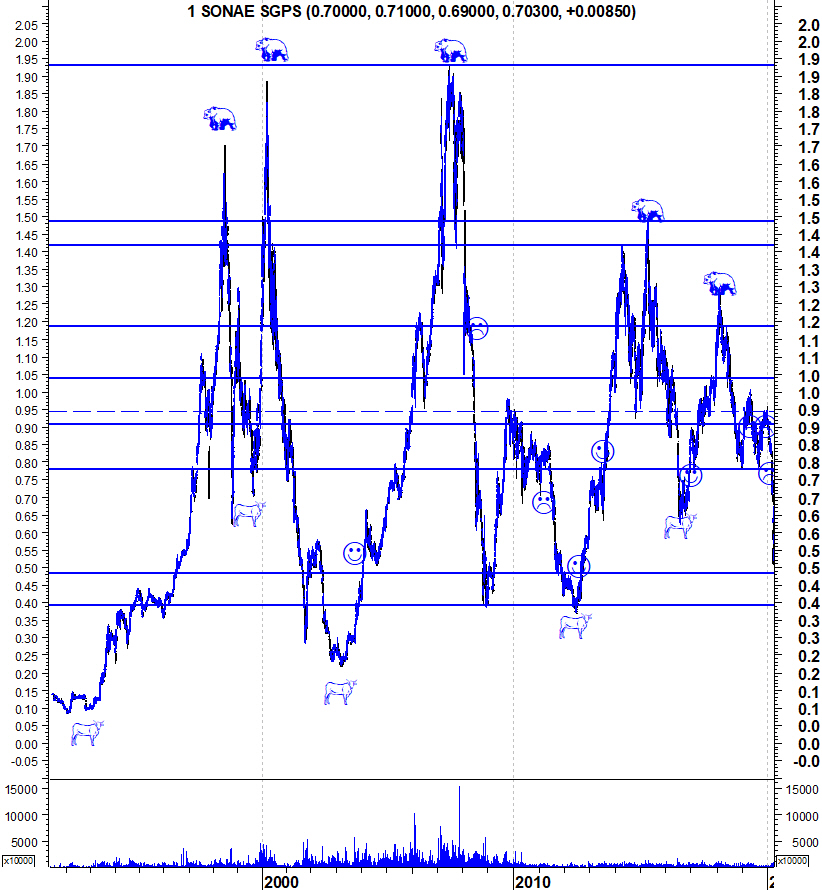 Deixo aqui os gráficos actualizados da Sonae SGPS para se ver como foi de extrema "sobrevenda" para quase "sobrecompra". O gráfico de longo prazo permite também ver e contextualizar a dimensão destas últimas quedas.