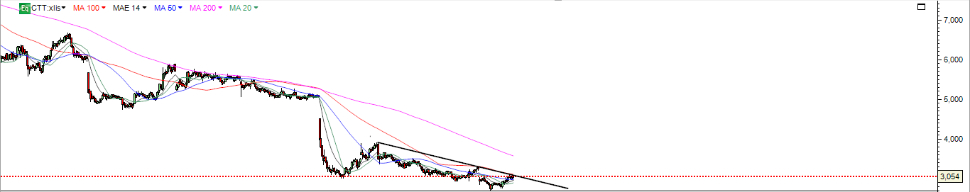 CTT ao nível da AT continua abaixo da LTD de curto prazo e ainda sem nenhum sinal solido de inversão.