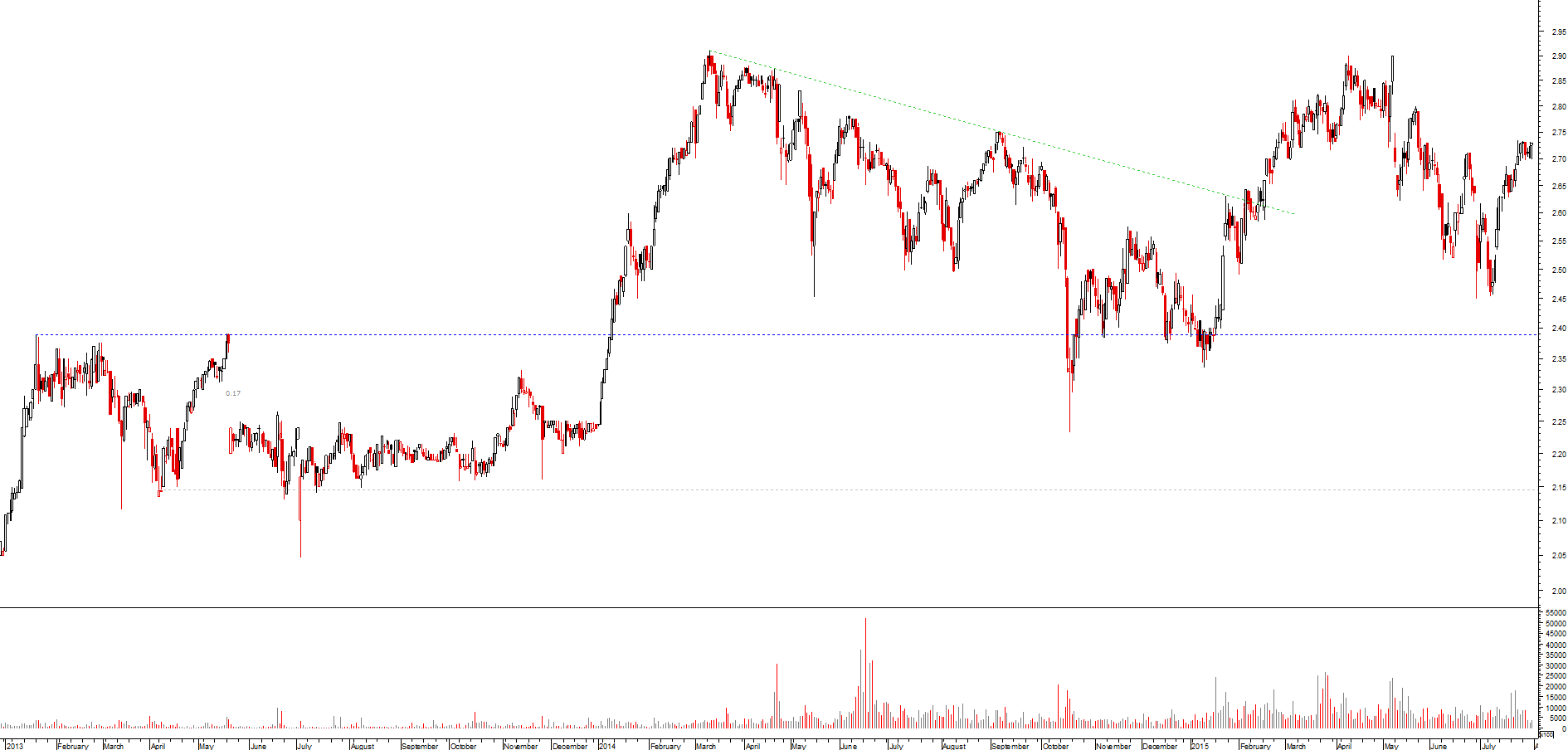 em out/2013 a cotação andava pelos 2.2X; em maio/2014 estava nos 2.7X, logo não deves estar a olhar para o gráfico da ren, ou os teus dados estão trocados, não sei..