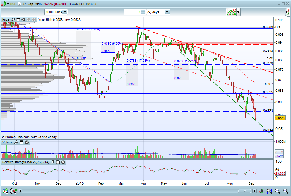 A meu ver o BCP corrigiu devido a muitos factores todos juntos, deu o que deu e não sei se ainda vai dar para cair mais...mas até aos 0,048 eu aguento, após esses valores começo a vender.....é o meu limite.