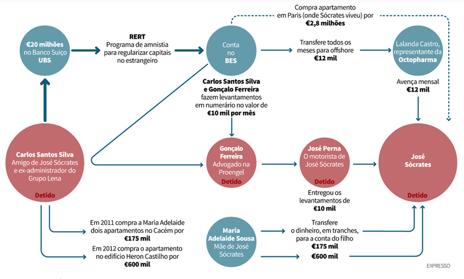 El semanario Sol (de propiedad angoleña), que fue quien reveló la noticia, señala que Sócrates ya tenía en 2010 -aún siendo primer ministro- una fortuna de 20 millones de euros en el banco suizo UBS, que trajo para Portugal en ese año, al abrigo del Régimen Extraordinario de Regularización Tributaria que su propio Gobierno creó. Ese dinero llegó a través de una empresa offshore de su amigo ahora también arrestado, Santos Silva. Con esa autoregularización, Sócrates solo pagó el 5% de impuestos. El dinero se quedó depositado en el BES, el banco de su amigo Salgado.