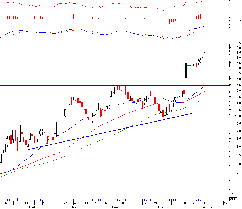 A próxima resistência que identifico situa-se nos 18,50 (travou por diversas vezes a acção no primeiro semestre de 2008).