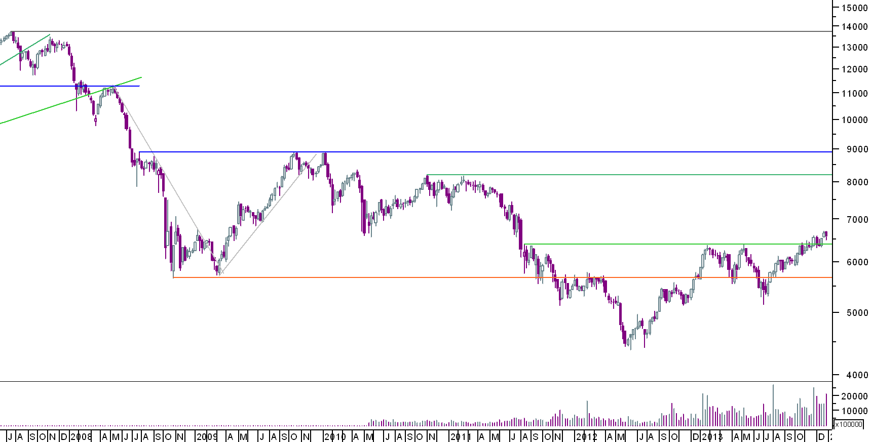 o mais interessante é que se o índice quebrar aquele suporte acima dos 12500, que grande trambolhão em perspectiva, uma vez que a subida anterior, de tão rápida, não criou quaisquer referências técnicas que sustenham as eventuais quedas