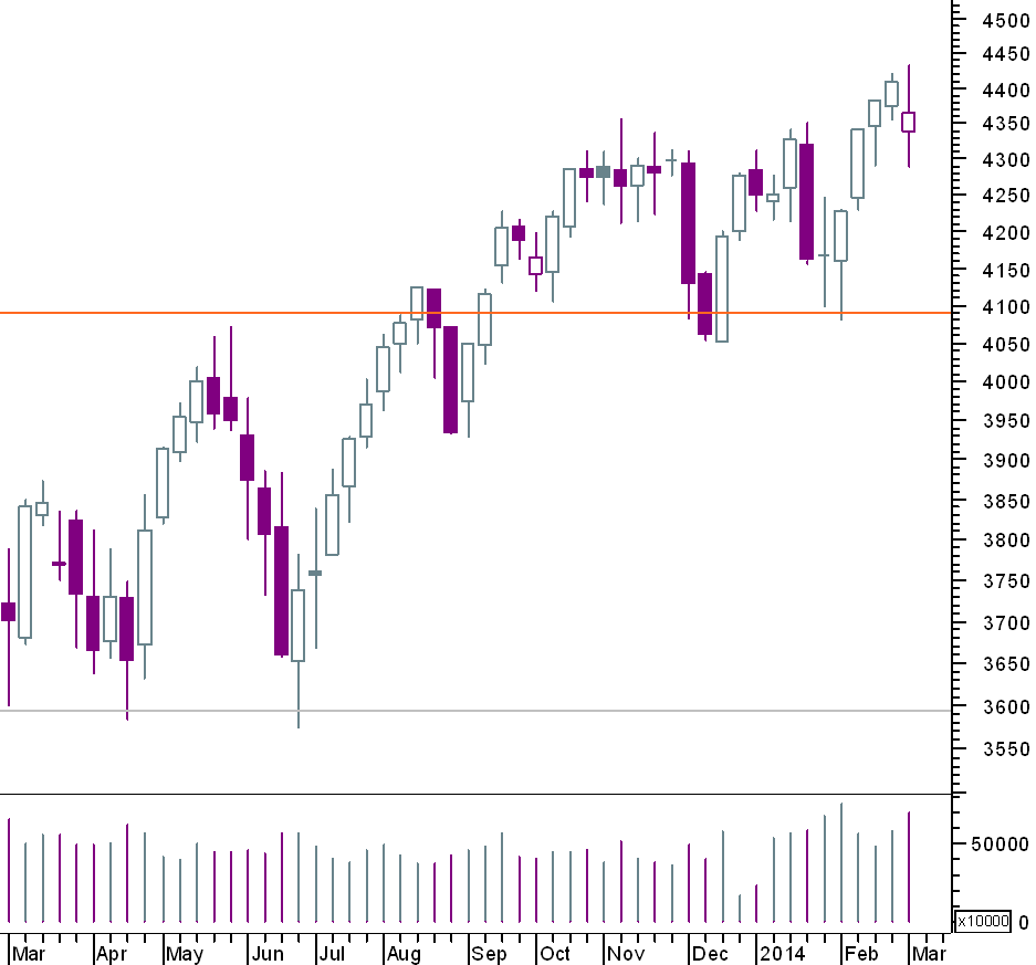 a vela de hoje no stoxx 600, quase uma shooting star, pode pressagiar a chegada da correcção