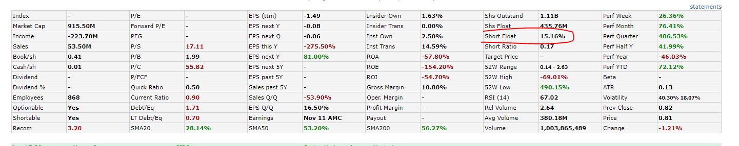 No finviz tem outro valores de vendas curtas. Onde foste buscar esse valores (%)?