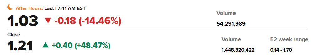 Há malta a apontar (no link do Nirsup ou no stocktwits) para querer chegar a 2$ ou até 4$. Depois há aqueles que falam em 100$ :shock: