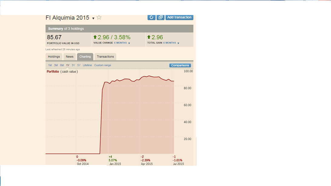 O FI Alquimia 2015 lá vai navegando a onda grega. Apenas está reflectida a carteira inicial (jcp, eem e jnk), sendo que dele também fazem parte dois activos-mistério.