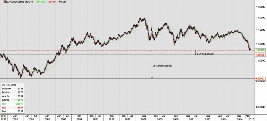 Aqui, todos perceberam que nos últimos 12 meses o EUR/USD já vem de 1.40 até (ao momento) 1.0697 (uau)