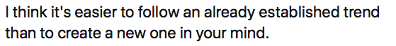 Always include in your thinking that whatever you're seeing in the marketplace is also visible to everyone else.
