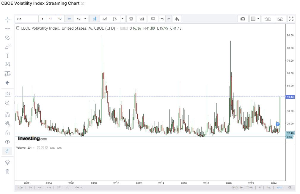 Inclino-me para o que vou chamar de "mini tempestade perfeita", vários factores em simultâneo e catadupa, factores que já se vêm discutindo nos vários tópicos. Resultados algo decepcionantes (nas tecnológicas em particular, o mercado sobreavaliou as expectativas da AI, pelo menos no imediato), logo a seguir os números do desemprego a virar (criando mais um susto adicional e receios de recessão) e logo a seguir a situação localizada no Japão, entre outros. O mercado fez máximos históricos recentes e o que não faltaram agora, no espaço de alguns dias, foram pretextos para corrigir. Hoje já está aliviar, vamos ver.....