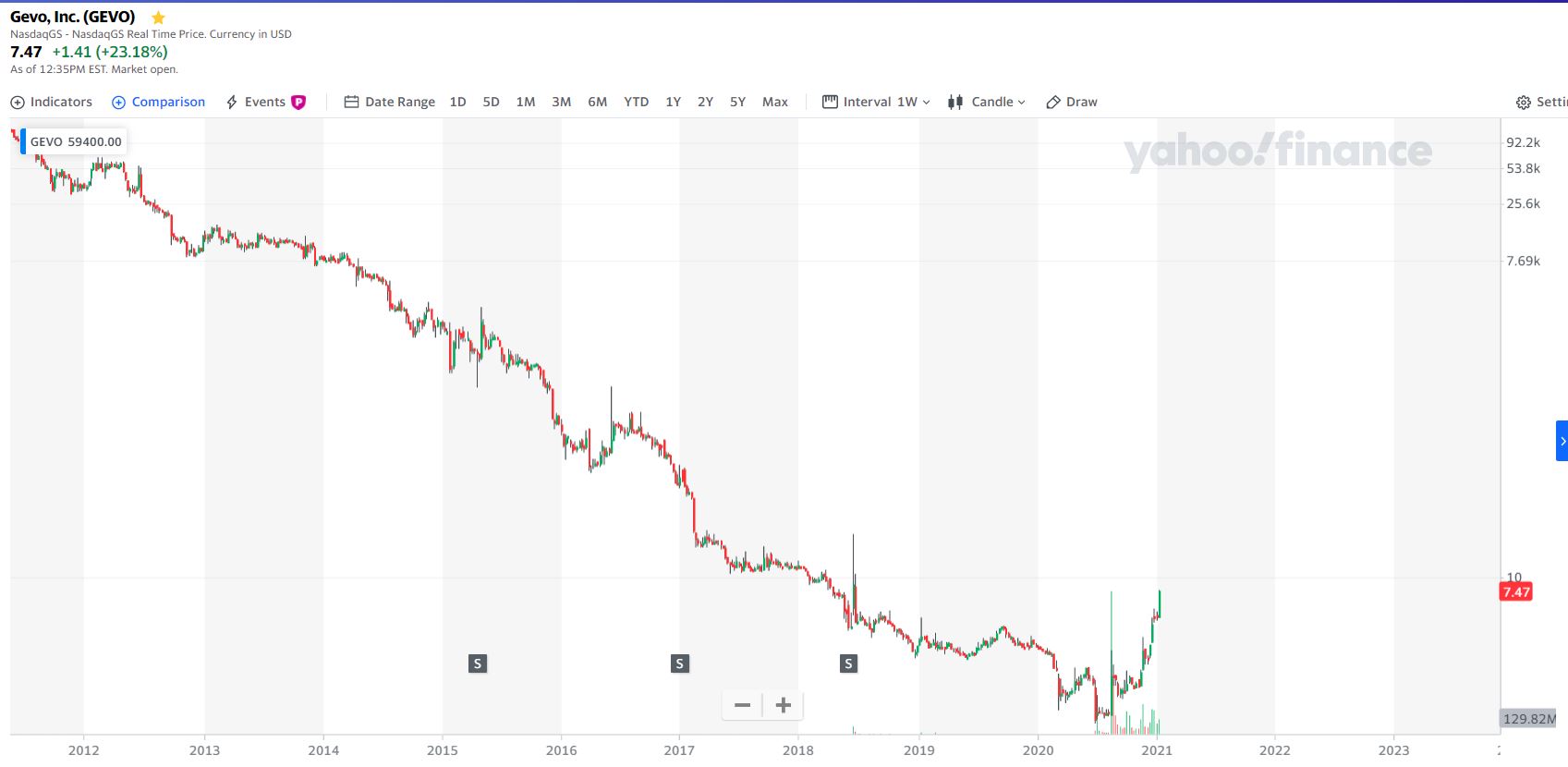 Quando observas o semanal vês que a queda da GEVO foi quase a direito.