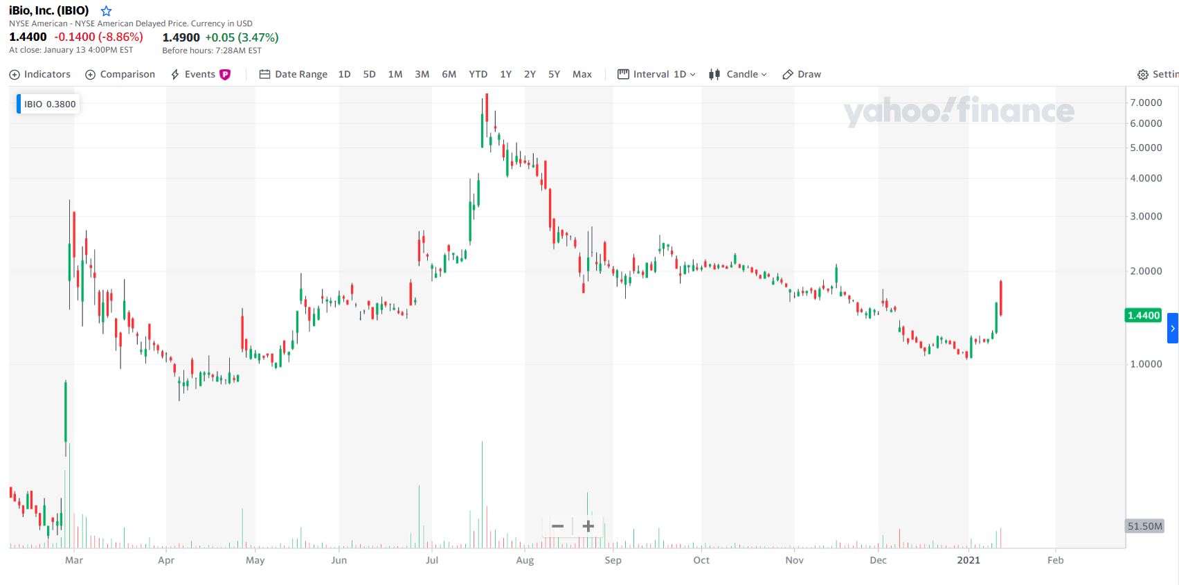 Quando vi o teu comentário sobre a IBIO, fiquei curioso e fui ver o boneco e também gostei do que vi. Muito volume, coisa que gosto de ver. Consciente do risco que é entrar neste tipo de ações, decidi adquirir uma posição residual, para ver no que vai dar. Se a cotação quebrar o prejuízo também não será significativo. Talvez a M50 aguente o preço. Recentemente fizeram um emissão de novas ações (diluição). Na minha humilde opinião, é uma ação especulativa, tanto pode ir aos céus como dar um enorme trambolhão. Acredito que muito do movimento vendedor tem a ver com o despejar das ações adquiridas na recente oferta. Fala-se que estão próximos de poderem vir a ter luz verde num dos ensaios clínicos de uma vacina covid.