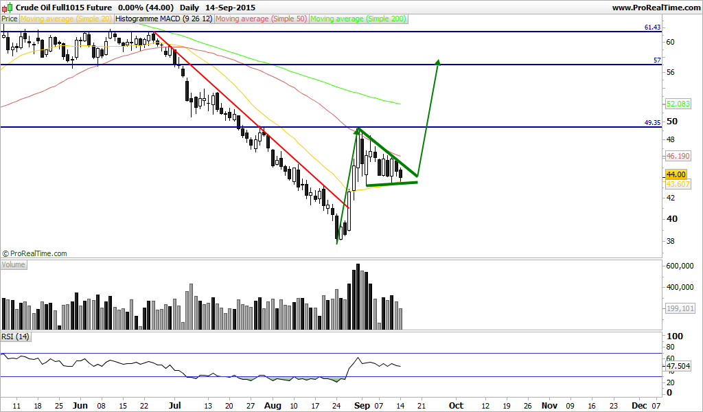 Para já o WTI está a arrebitar e a portar-se bem, estando acima dos 45