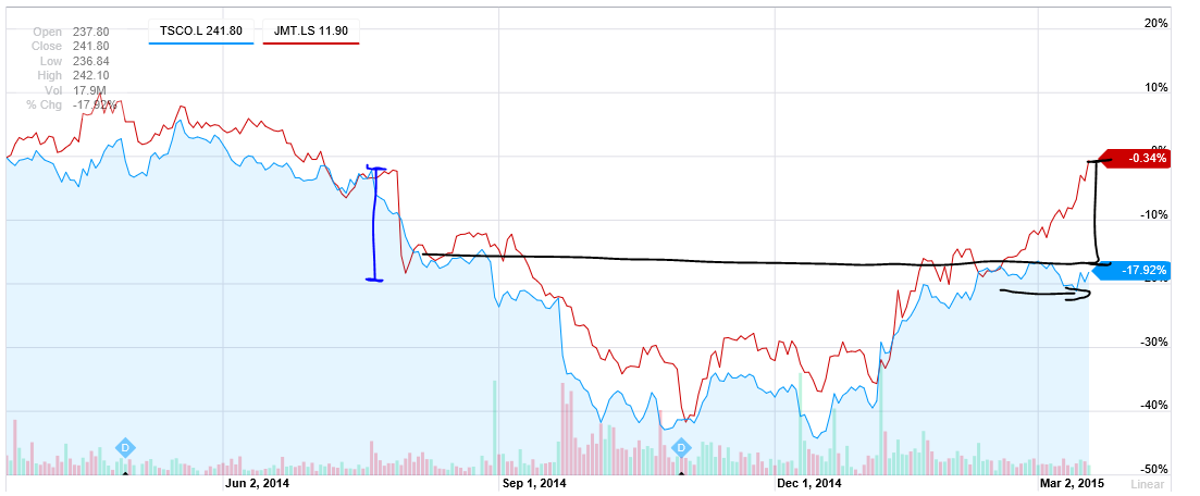 Eu ja tirei as minhas. A JMT tem um desempenho praticamente identico à TESCO segundo esse grafico. Destacou-se agora apenas por aquela figura técnica num timing perfeito com a saída em crescendo de bons resultados