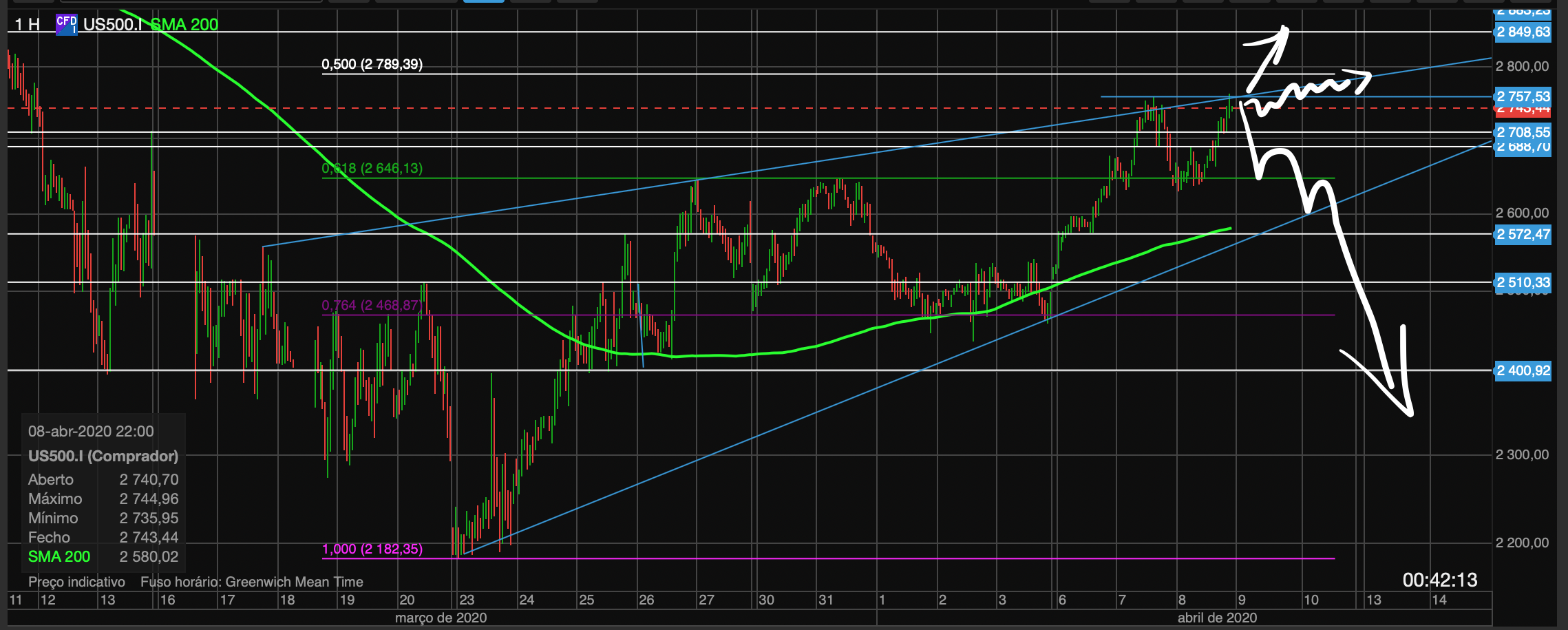 Ahah J, a ideia era que este mini H&S tivesse a projecção na base da cunha... com ajuda da quebra daquela LTA. Mas a neckline está resistente. Se calhar está a pedir um longo para ainda ir aos 2790... Está aqui na zona de suporte (antiga resistência dos 2640)... Basicamente, no short term isto dá para os dois lados, é escolher a brasa e ver para onde sopra o vento.