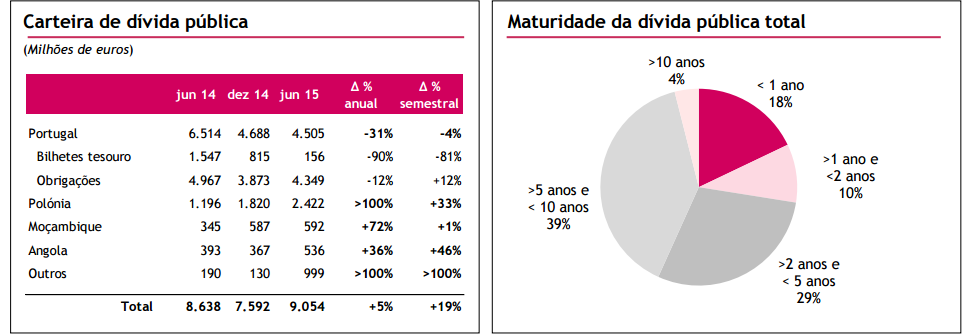nomeadamente a carteira de dívida pública, bem como à evolução
