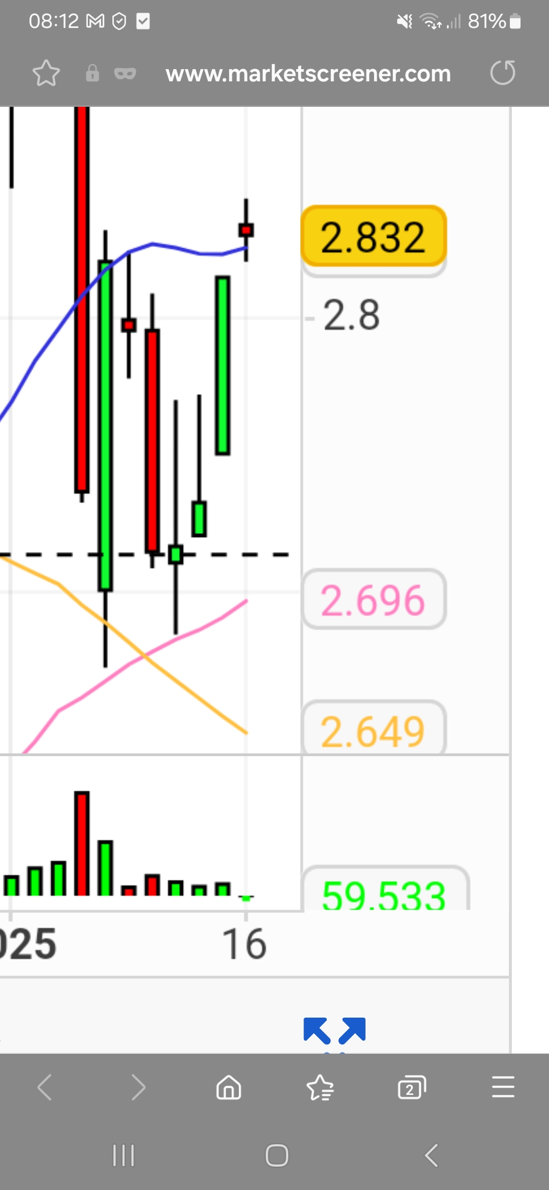 Vendi 30% a 2.81 porque estamos em zona de incerteza em relação aos índices. Fizeram um rebote e ainda não corrigiram tudo, ou vamos para máximos? Esse é o ponto. Se formos para máximos a estratégia manrter-se há e em 3.40 venderei mais 30%, Se vier a 2.50 recomprarei.