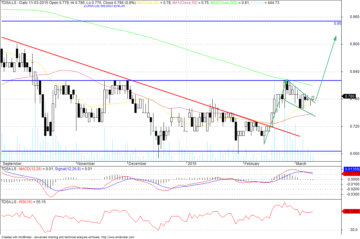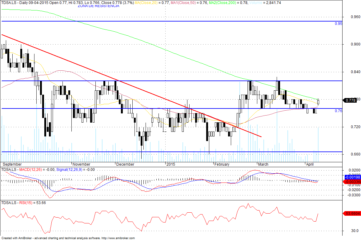 para já o suporte nos 0.76€, está intacto