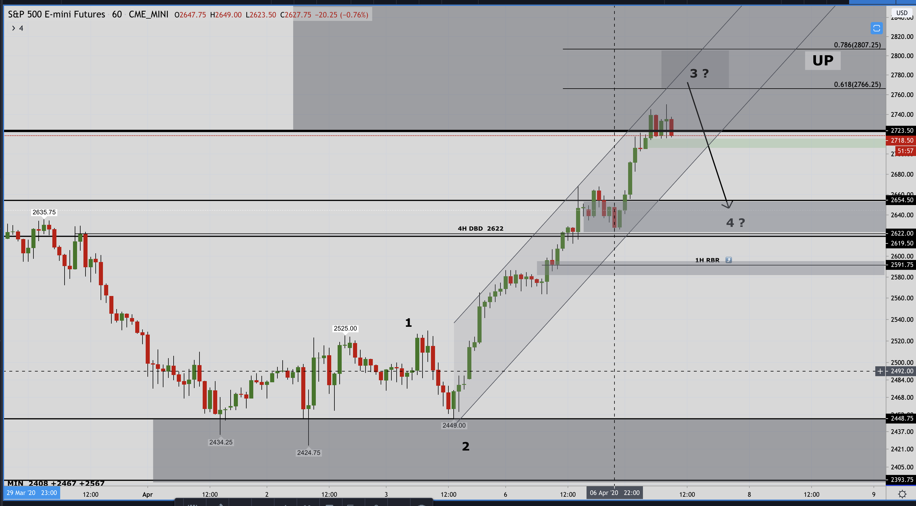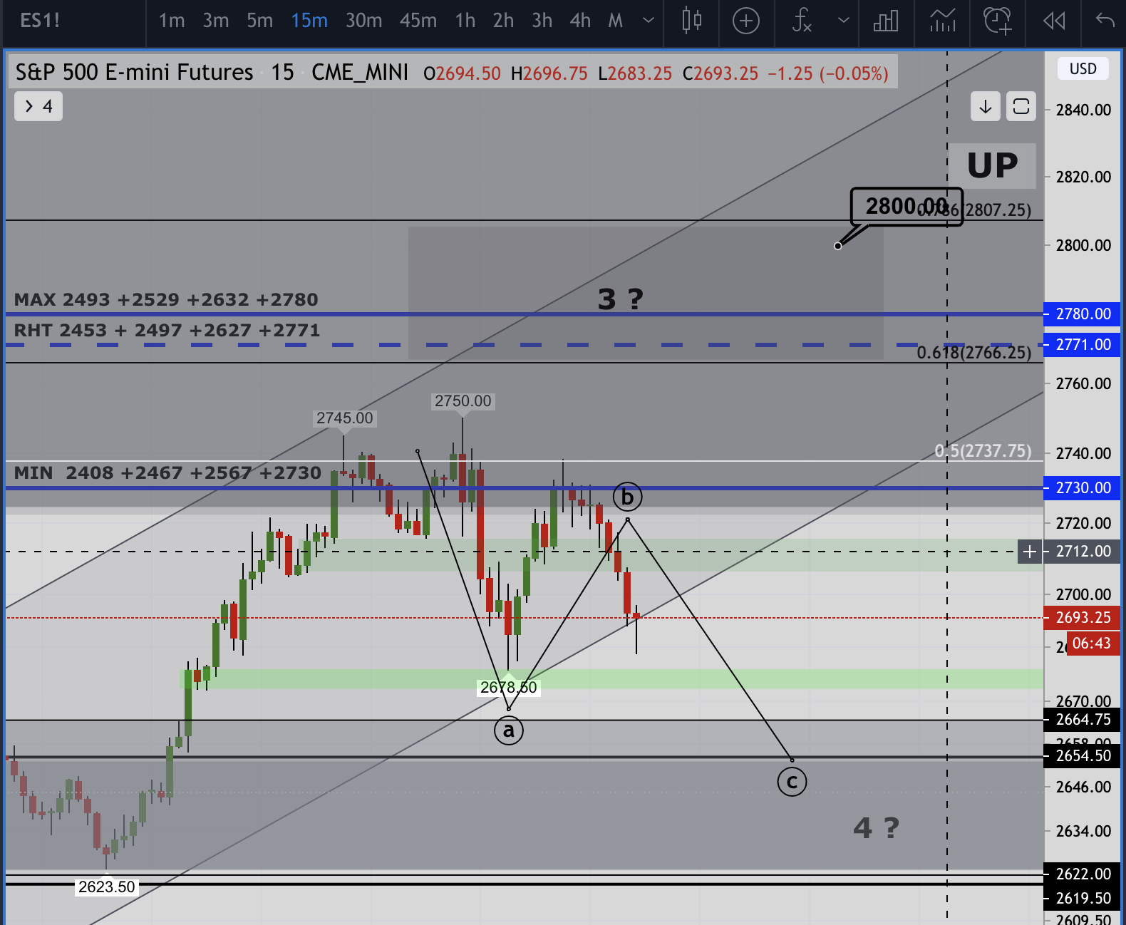 Considerando a contagem, teremos resistencia nos ~ 2766 ~ 2800 , com consolidação e posterior descida aos ~2640