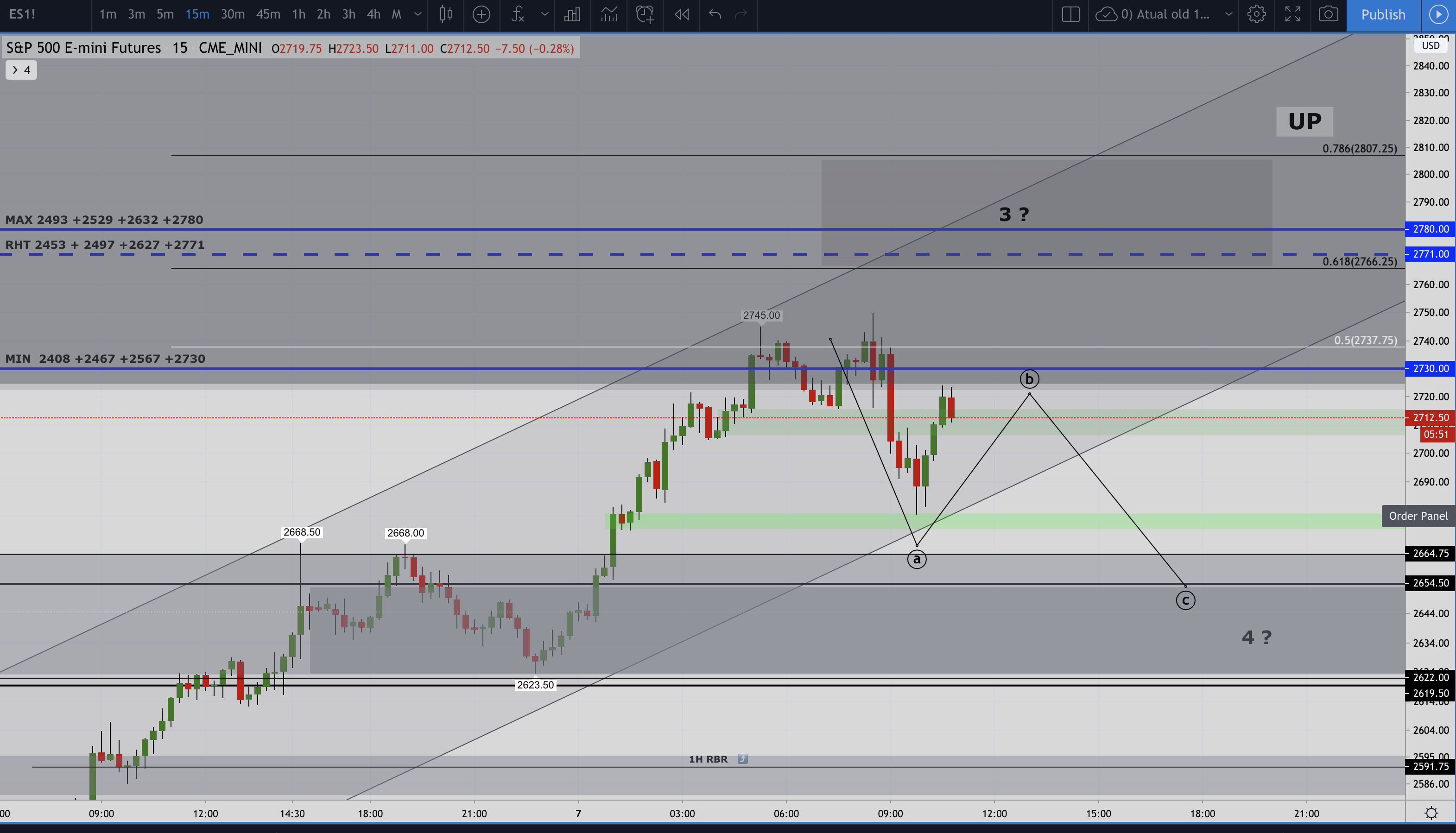 Próximos passos: Permanecendo acima dos ~2600 , completamos movimento 5 para ~2800.