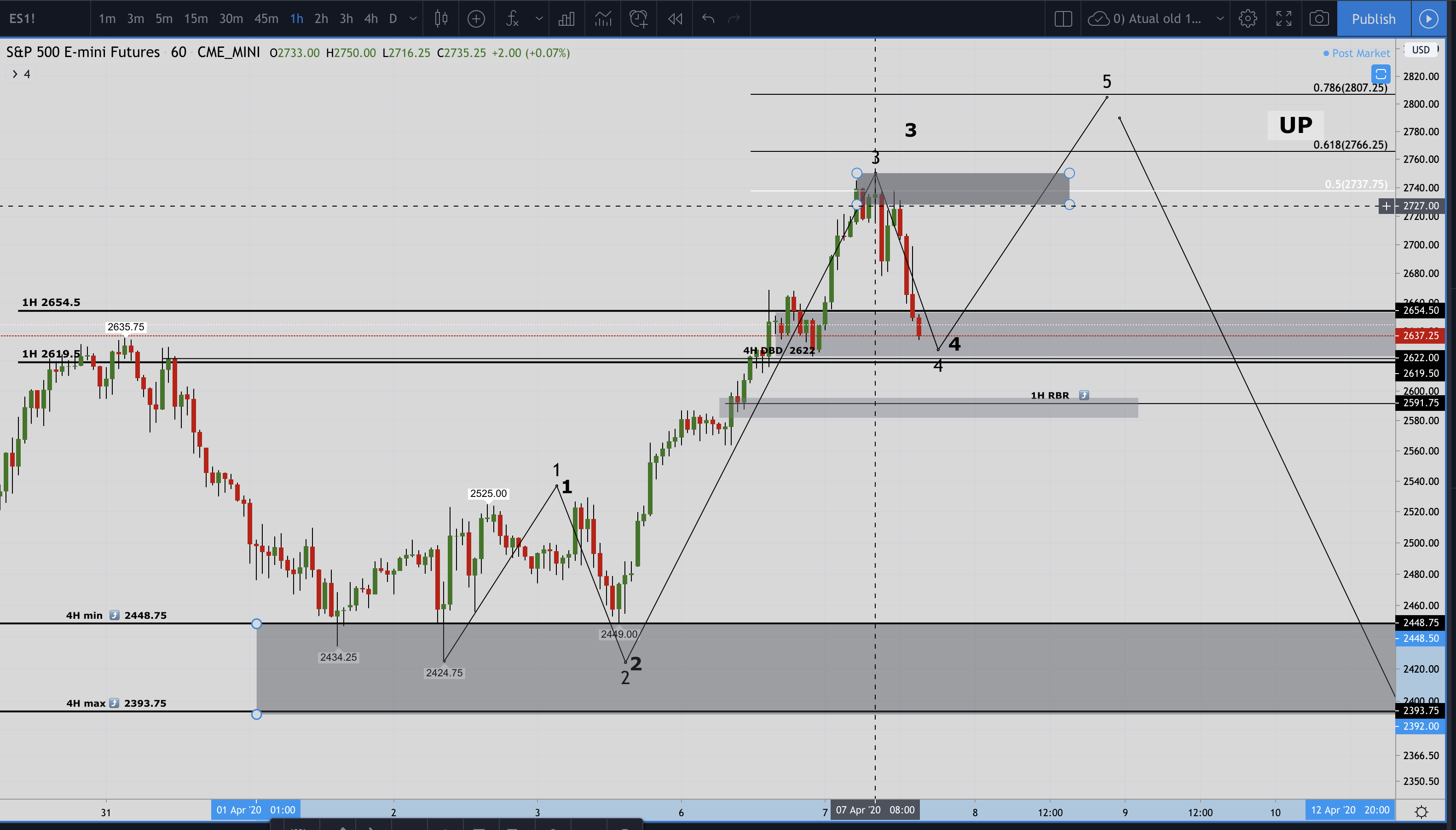 O pull back ocorreu um pouco mais cedo no fib 0,5 (tipicamente seria fib 0,618 e cruzando canal ascendente) concretizando-se o nível 4.