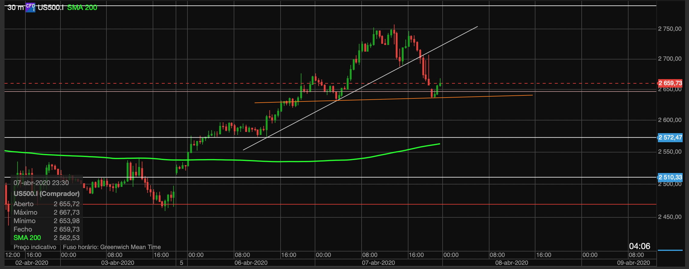 Tenho um curto aberto há já algum tempo no S&P e estou a preparar-me para reforça-lo. E quero investir mas mais cá abaixo, vamos ver se terei razão. Até ver a MM200 no semanal funcionou muitíssimo bem como resistência, se se mantiver irei reforçar o curto.