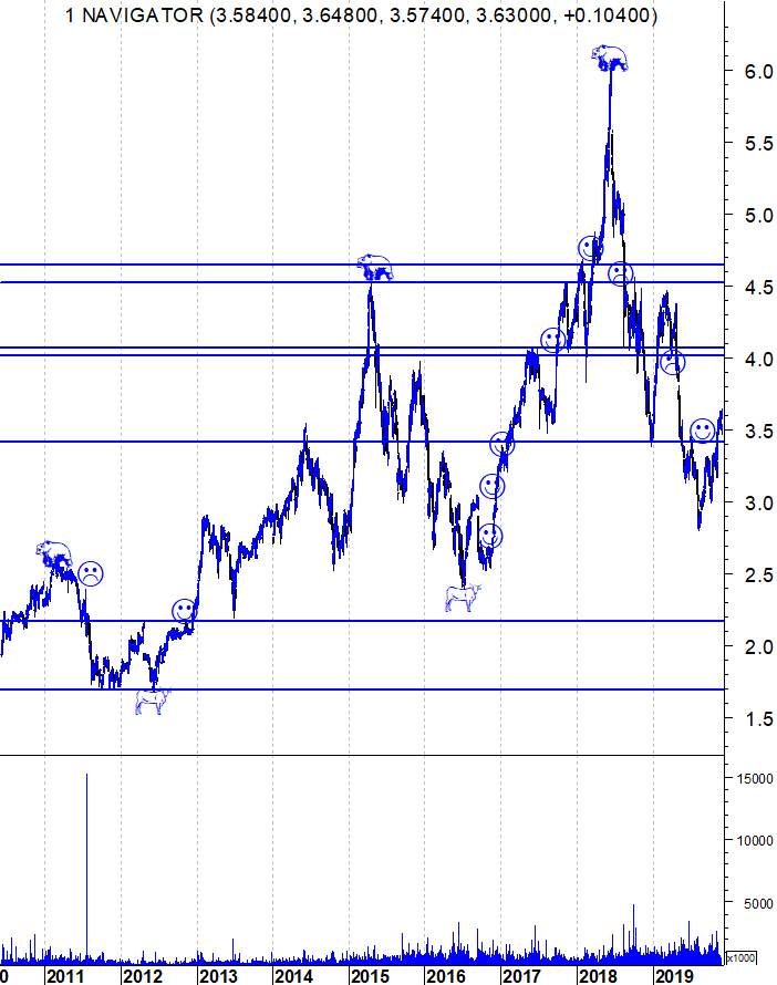 Deixo os gráficos actualizados da Navigator, que continua o seu percurso ascendente depois de quebrada a resistência dos 3,42.