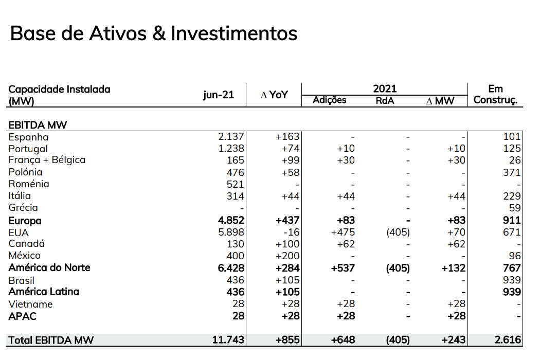 A este respeito importa referir que a EDPR estava a investir, em 30/6/2021, mais 22% do montante que estava a investir um ano antes.