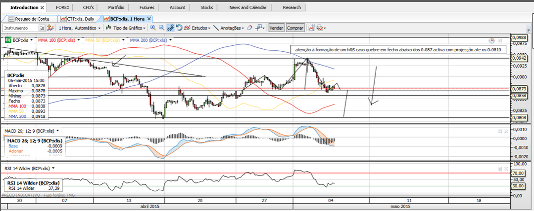 Não consigo identificar nenhuma tendencia para já no BCP,embora no semanal a coisa aliviou um pouco e com alguns sinais de compra,mas ainda é cedo