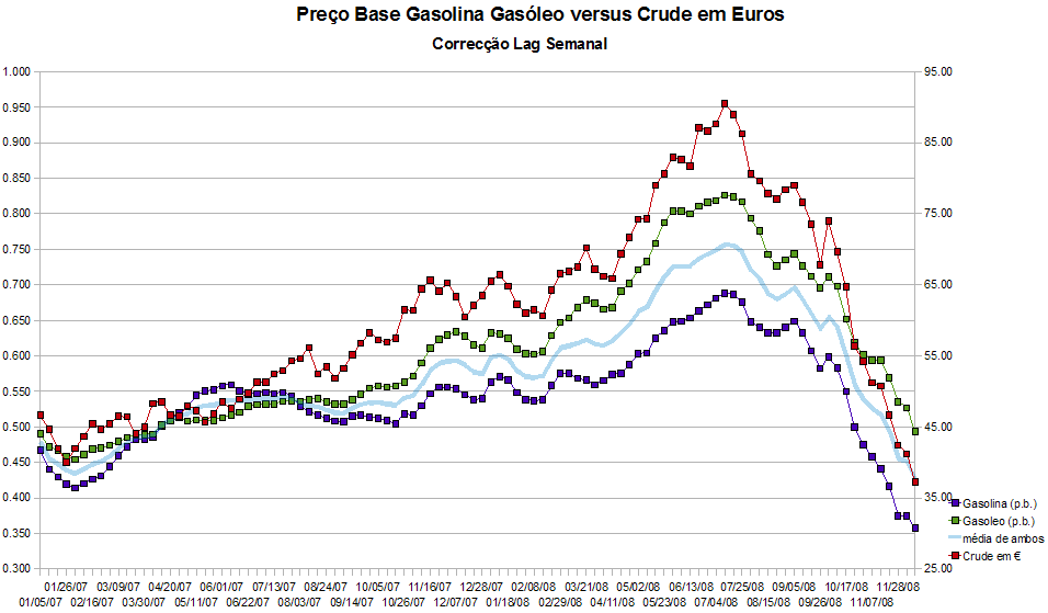 Desde então que os preços estiveram sempre acima de um euro, com excepção de breves períodos em Dezembro e Janeiro de 2005 e Fevereiro de 2007, segundo dados da Direcção-Geral de Energia e Geologia.