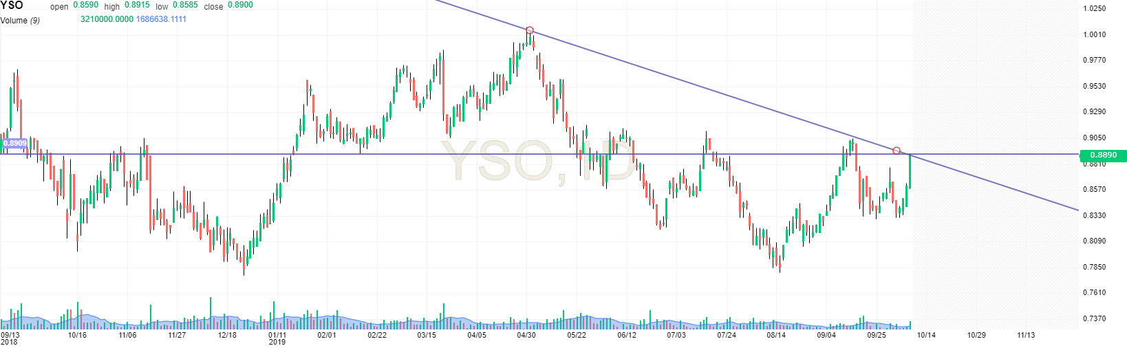 Uma inversão da tendência primária seria fechar o gap a 0,9015€ e posteriormente ir fechar o gap a 0,99€.