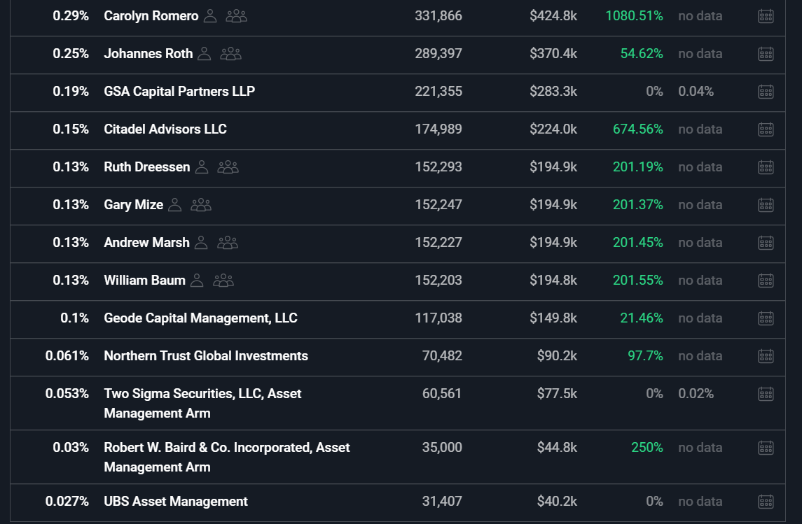 Boas deixo esta imagem esclarecedora da posição dos maiores acionistas da GEVO (incluindo o Board Menbers) que durante este ano aproveitaram para aumentar as posições na empresa. (% a verde)