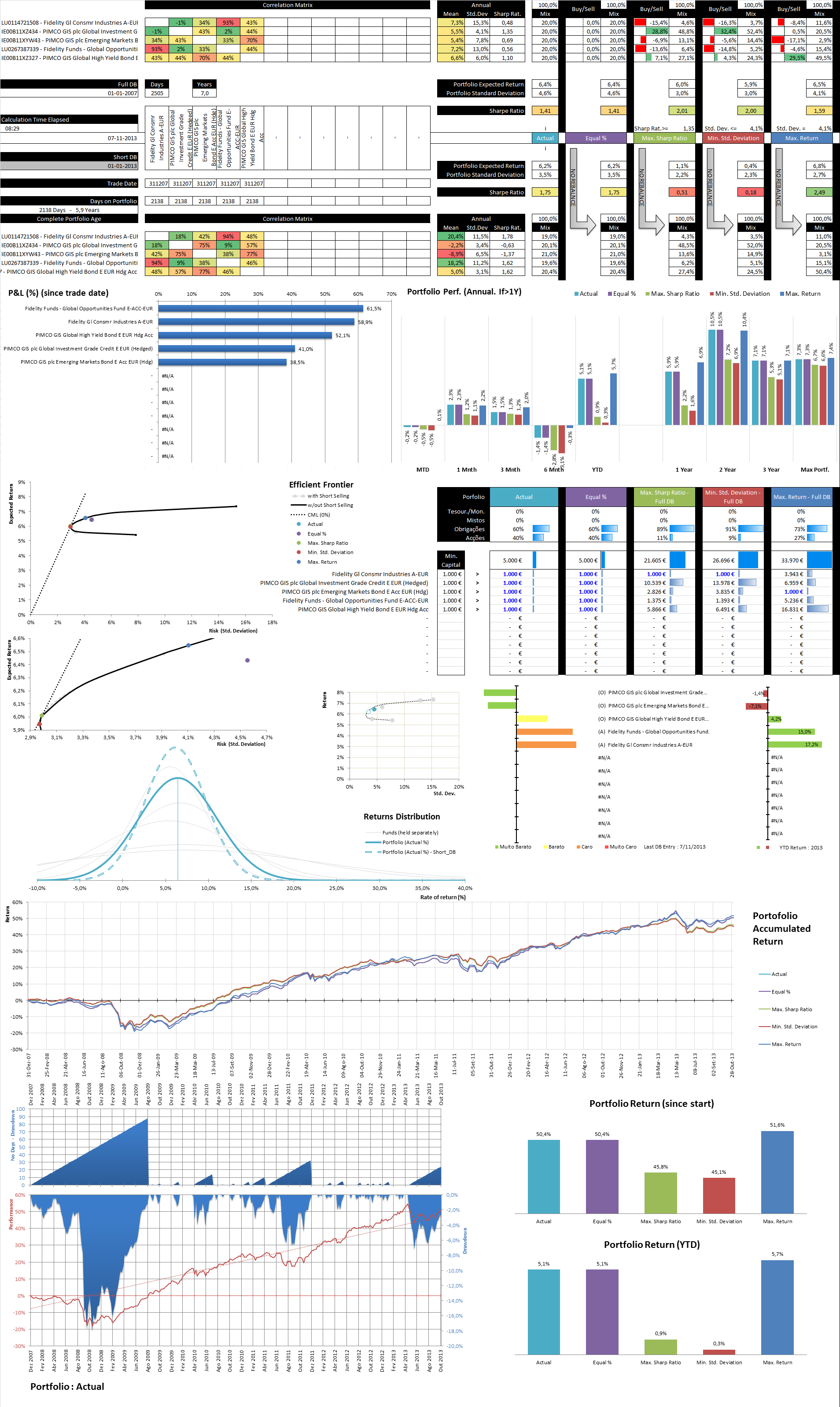 É a primeira vez que participo neste fórum, tendo-me iniciado este ano no mundo dos Fundos de Investimento. Tenho seguido este fórum (tal como um outro - o de Finanças) os quais me tem ajudado muito a entender este mundo. Venho apresentar a minha carteira actual, que neste momento apresenta uma valorização de 2,5%. Assumi algum risco, mas neste momento após os meus últimos upgrades da carteira, fez com que ela tenha distorcido um pouco, nomeadamente nos fundos de ações (o objectivo seria entre 35% a 40%),apos a aquisição do fundo ING Consumer LU0332193001, e devido ao valor inicial. O meu raciocínio foi neste momento apostar mais em ações (europeias de preferência) devido a algum receio ao que ira acontecer com as obrigações, nomeadamente as US por causa da possível retirada dos estímulos por parte do FED. Mesmo nas obrigações virei-me um pouco para High Yield, porque parece-me que dentro das obrigações este ano são as que podem dar maior retorno.
