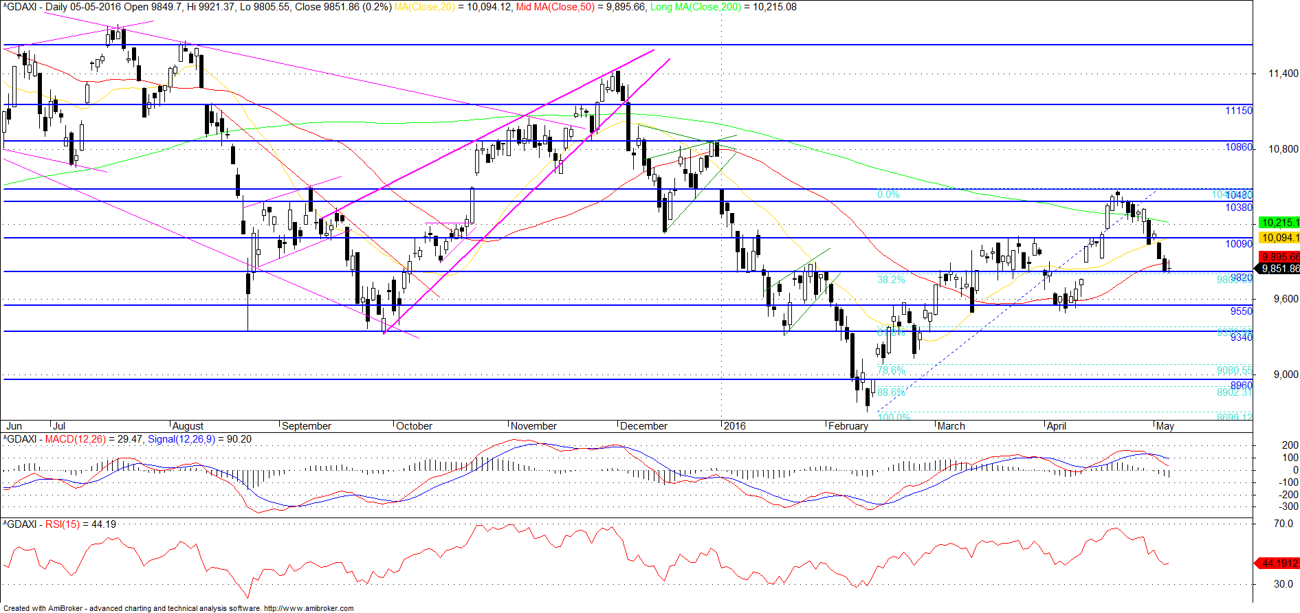 Outra coisa interessante são os futuros nos States estarem a ficar verdes. O RSI do DAX aproxima~se do sobrevendido e as velas diárias mantem-se logo abaixo da MM50.