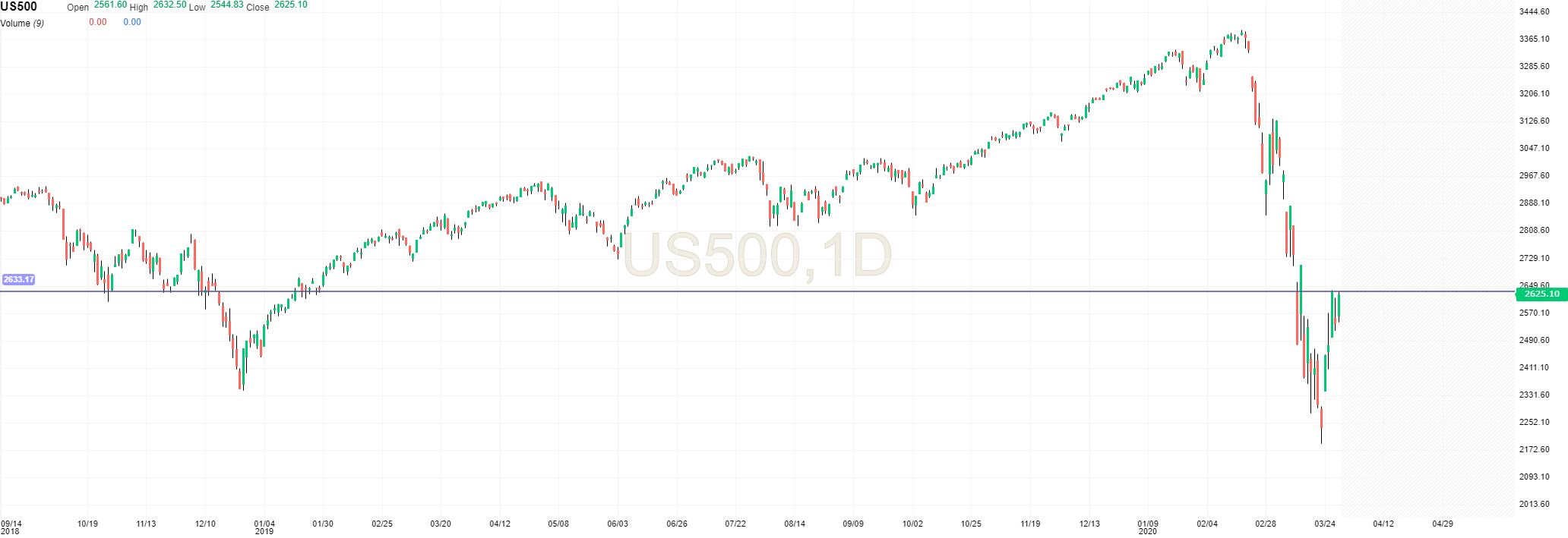Joao.D Escreveu:Vou olhar agora para o s&p 500. Desceu muito em 2 dois meses e subiu na semana passada. Desceu na sexta e desde q o bear market começou que tem descido tb na segunda. Acho que so uma vez é q nao desceu na segunda. O mínimo de sexta foi 2520 em fecho. Se descer segunda, terá outro mínimo em fecho. Se depois subir e tiver um fecho acima de 2630 passará a ter máximos e mínimos sucessivamente superiores, quer dizer que a tendência passará a ser ascendente.