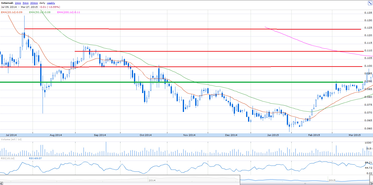 Penso que pela tua perspetiva, uma vez que consideras 0,10€ uma forte resistencia psicologica, será bom ponto de entrada quando os romper.