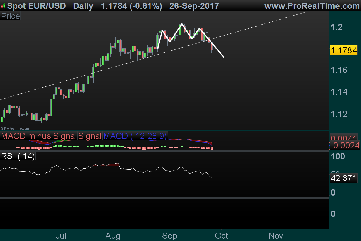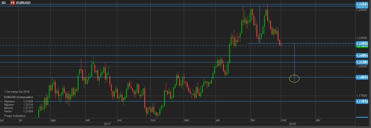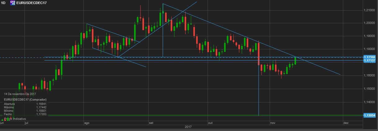 Quebrando os 1,170 deverá dar força aos ursos.