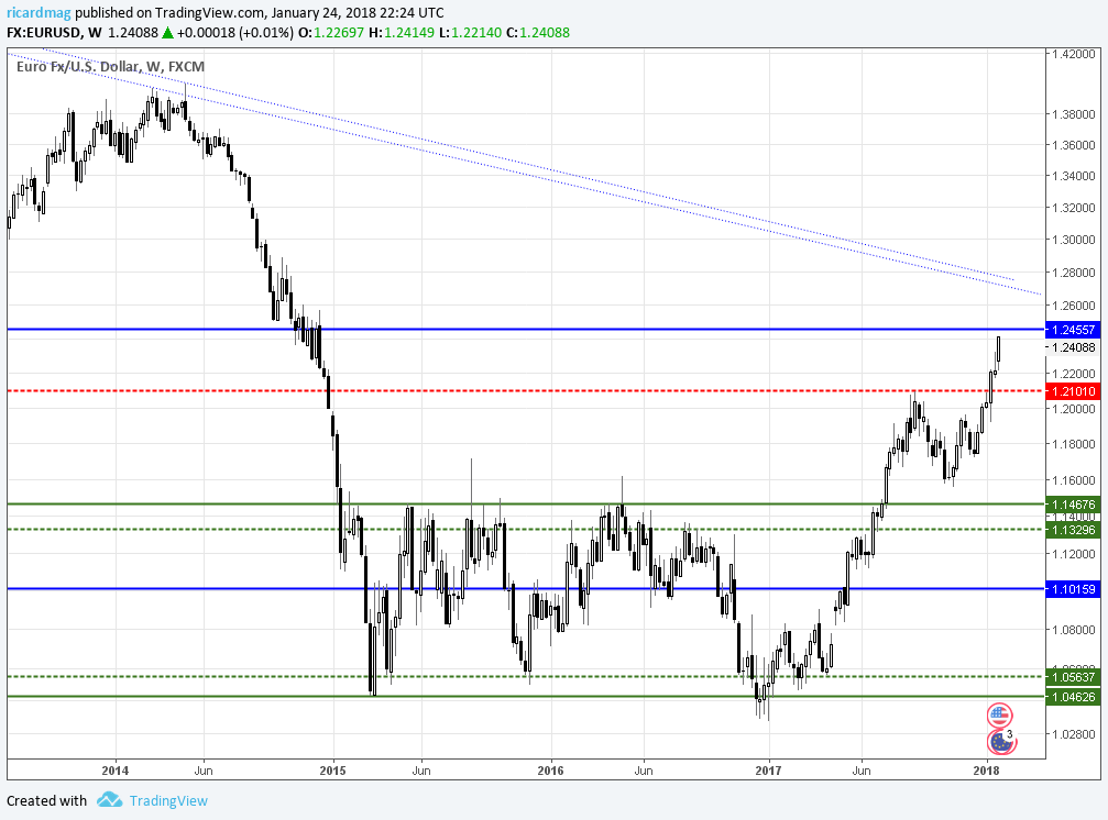 Com as confusões do TRUMP e outras múltiplas questões nos USA , o dólar está a perder sucessivamente contra quase todas as moedas com uma fraqueza enorme e tendo já quebrado mínimos de 2015 e esta tendência parece ser para continuar ( Exceto se Yellen subissse muito as tx juro ).