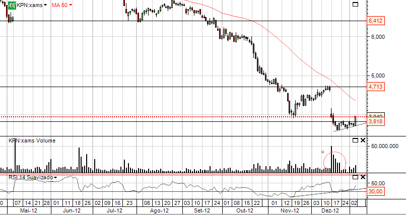 A KPN está em novos mínimos e a quebrar um triângulo descendente em baixa, segundo o meu gráfico. Projecção pelos 1,20€.